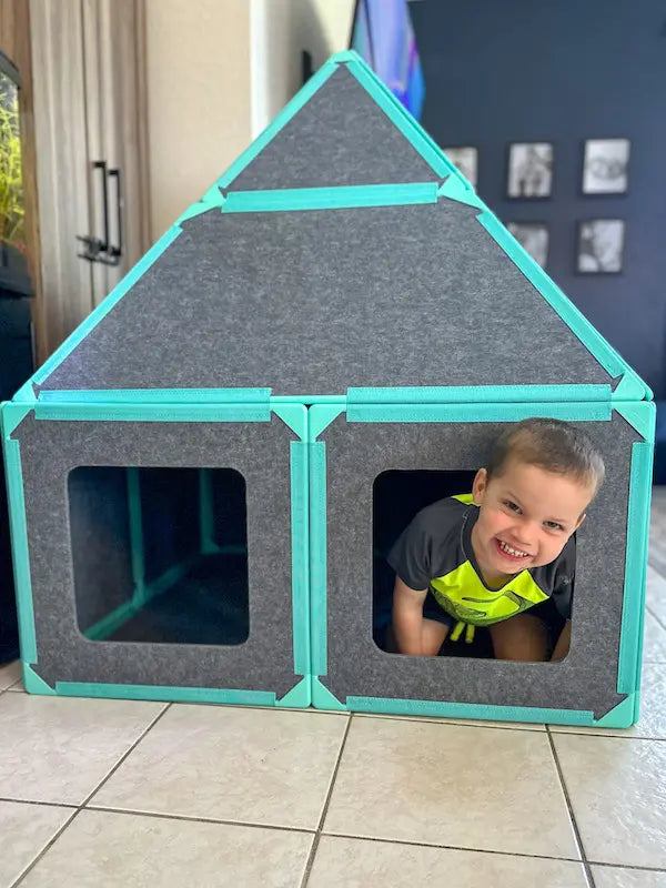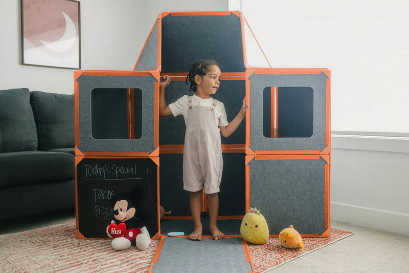 Die einzelnen Module lassen sich einfach zusammenstecken und wieder lösen, ganz ohne Werkzeug. Kinder können jederzeit neue Formen bauen, umbauen und ihrer Fantasie freien Lauf lassen.